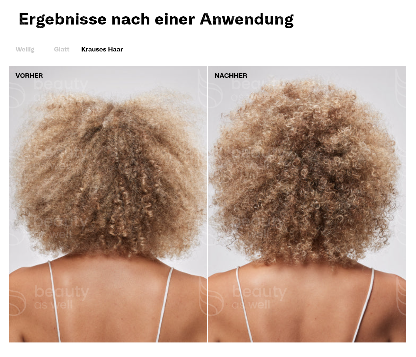 - Alle Haartypen und -texturen, von unbehandelt bis stark strapaziert.