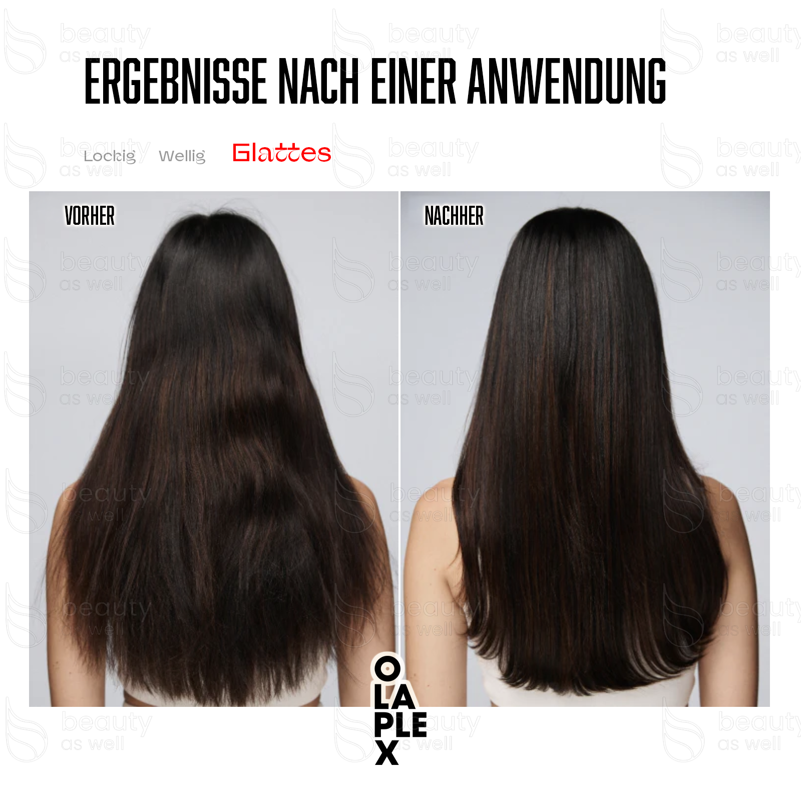 Bei regelmäßiger Anwendung fühlt sich das Haar sofort weicher, glatter und gesünder an. Gespaltene Spitzen werden versiegelt, Frizz reduziert und der Glanz sichtbar gesteigert – für stärkeres, geschmeidigeres und besser frisierbares Haar.