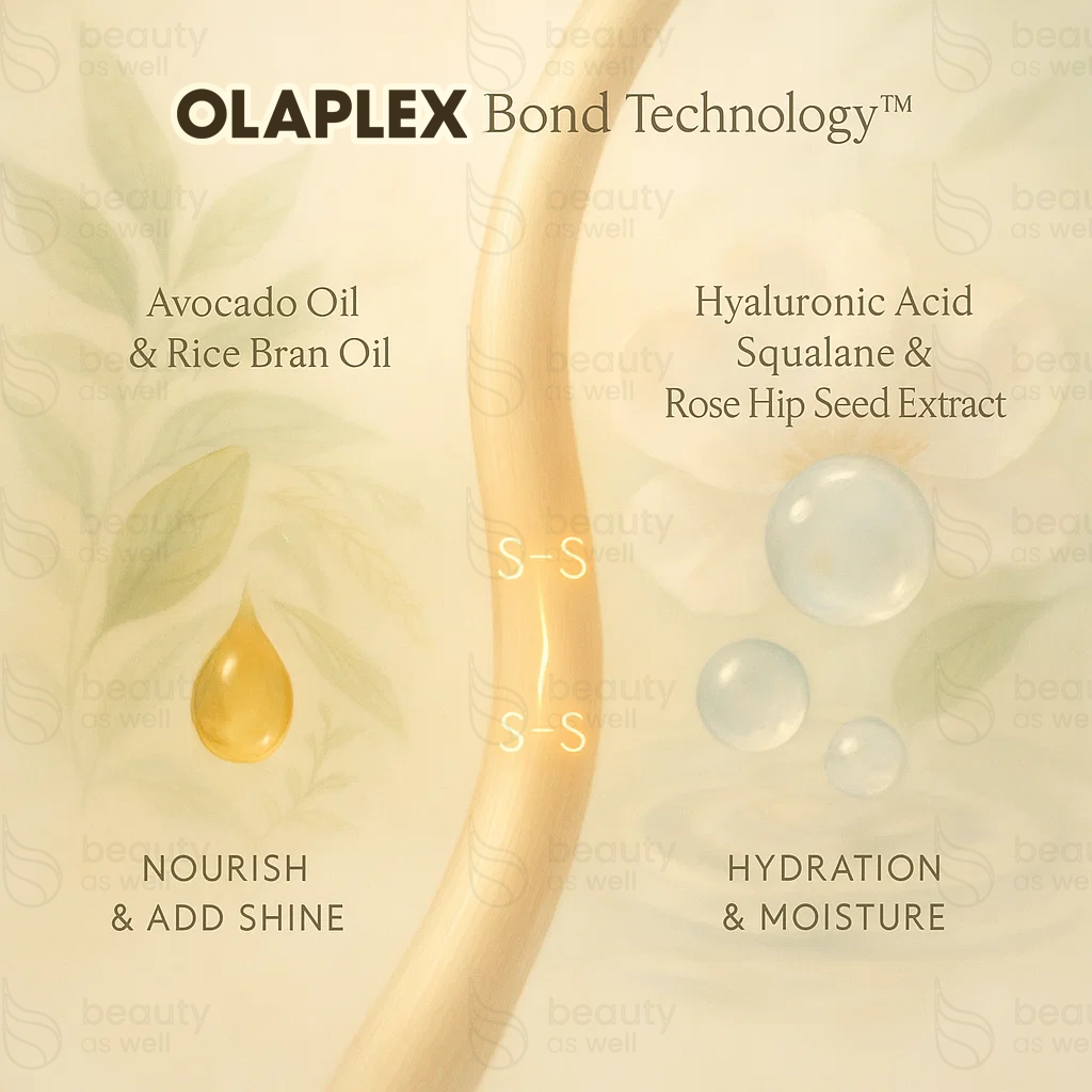 - Patented OLAPLEX Bond Technology - Rebuilds disulfide bonds to strengthen hair and repair damage at the molecular level.