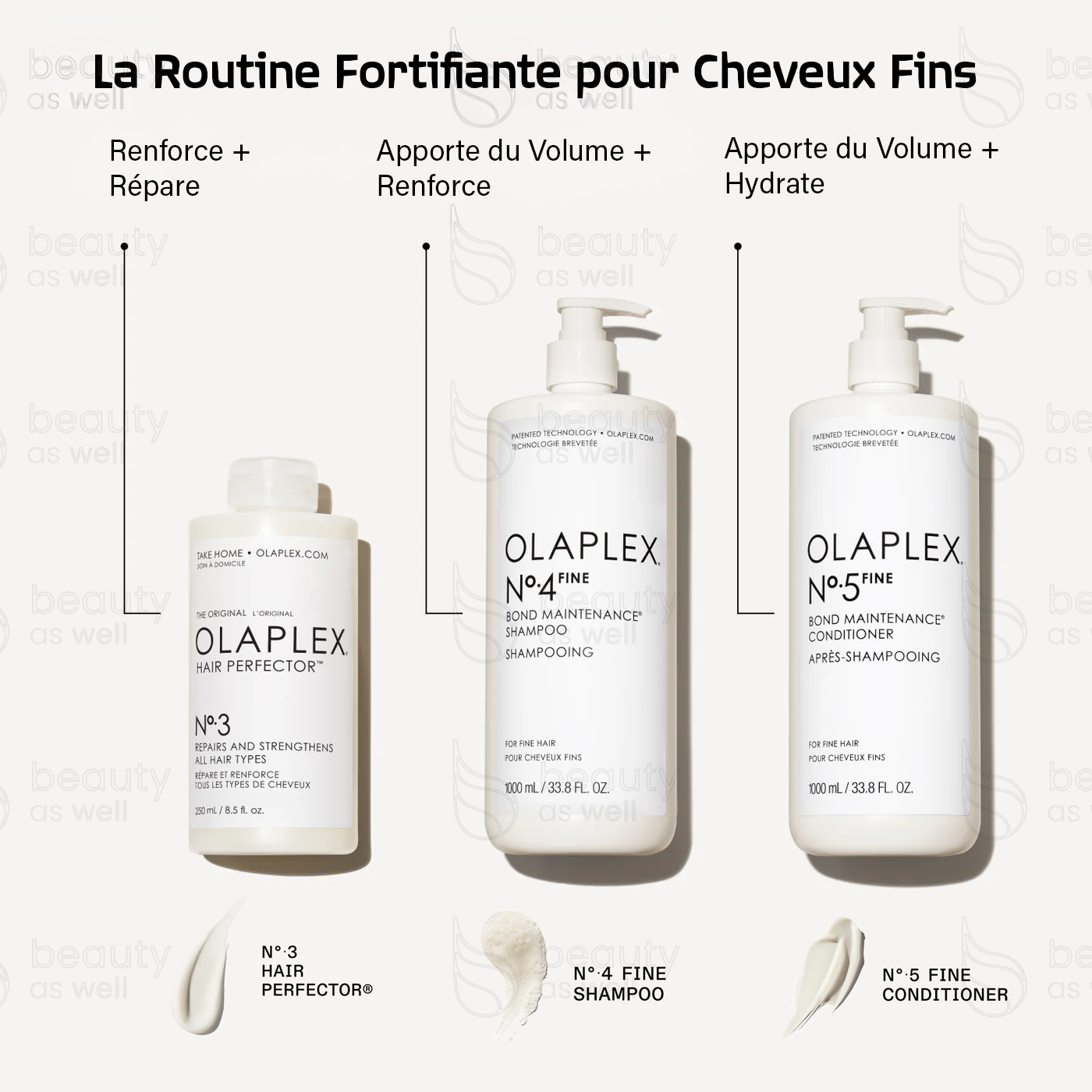 Découvrez la routine idéale pour cheveux fins : renforcez, réparez et redonnez du volume avec OLAPLEX Nº.3, Nº.4 Fine et Nº.5 Fine.