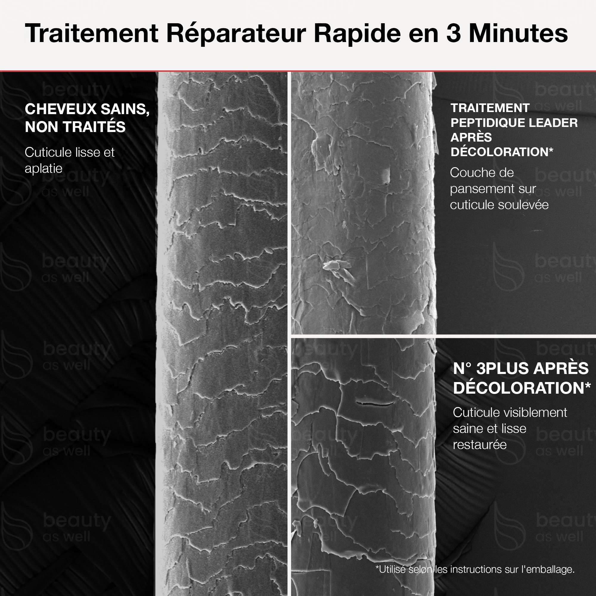 Transformez les cheveux abimes en seulement 3 minutes avant le shampooing grace au No.3 Plus. Ce traitement reparateur des dommages causes aux cheveux est cliniquement prouve pour laisser des cheveux 3 fois plus forts et plus doux. Il reconstruit en profondeur les 3 liaisons capillaires de chaque cheveu pour une reparation a 360 degres et une defense contre les dommages passes, presents et futurs.