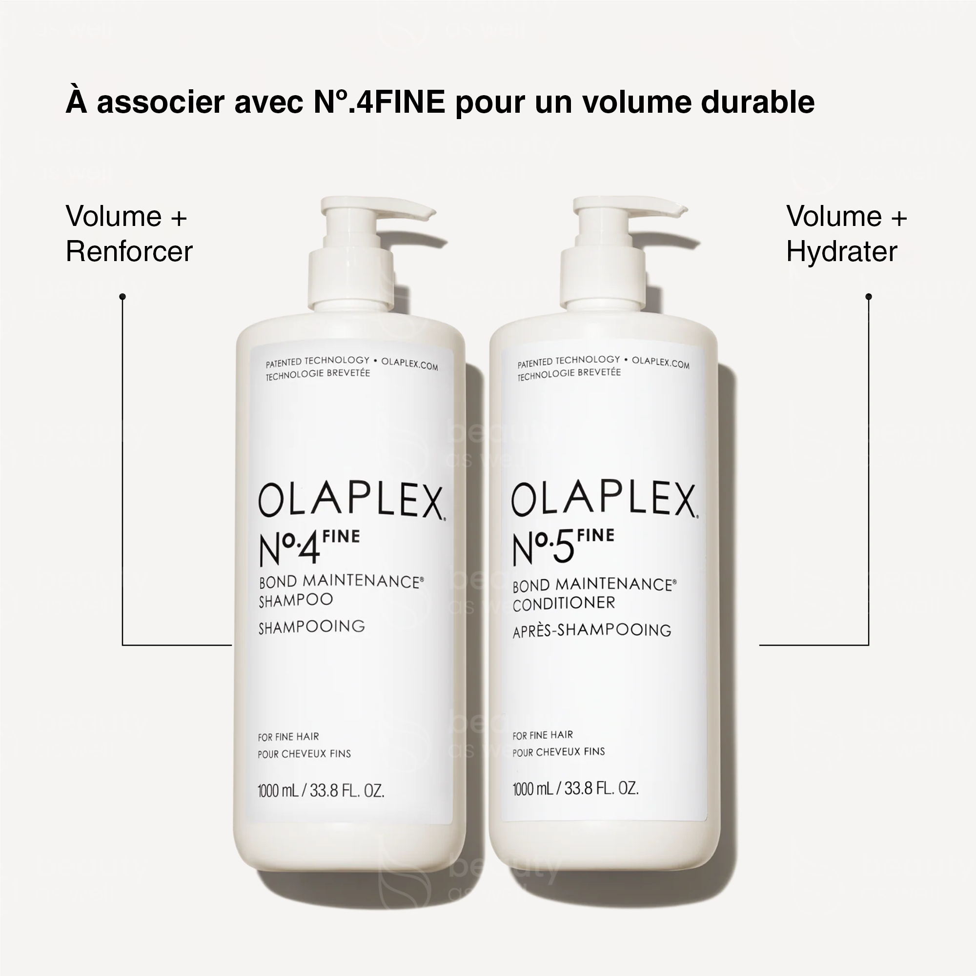 Formats disponibles : Ce format professionnel (1000 ml) est conçu pour une utilisation en salon. Pour l’entretien à domicile, découvrez le OLAPLEX Nº.5 Fine – 250 ml.