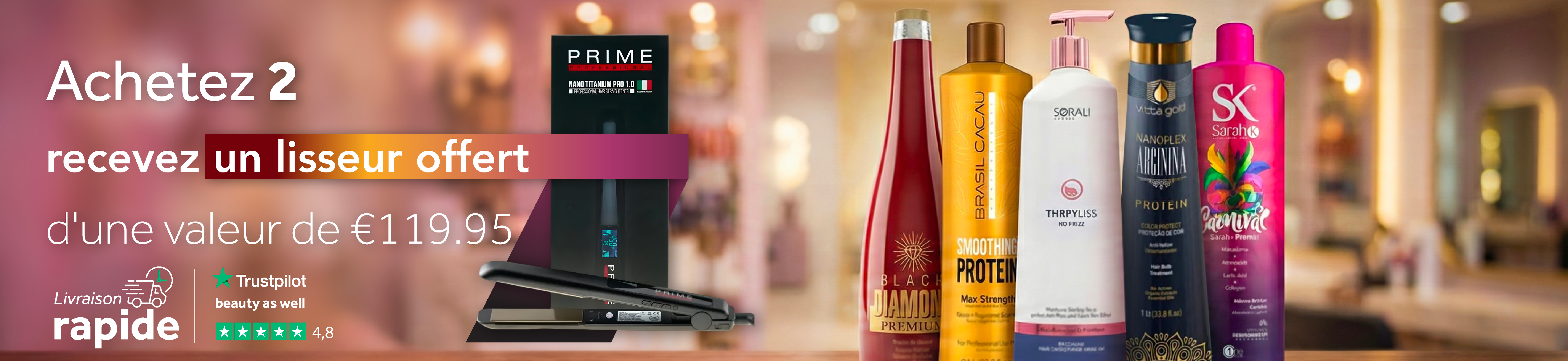 En tant que votre fournisseur de produits de soins capillaires, nous veillons à ce que vous puissiez commencer le traitement de vos cheveux le plus rapidement possible. Grâce à un traitement à base de protéine naturelle, comme un traitement à la kératine, non seulement vos cheveux seront revitalisés, mais ils seront aussi moins frisés. Si vous cherchez un moyen efficace d'obtenir des cheveux sains et lisses qui sont plus faciles à coiffer, ce traitement à base de protéine est idéal. Chez beautyaswell.com, vous trouverez