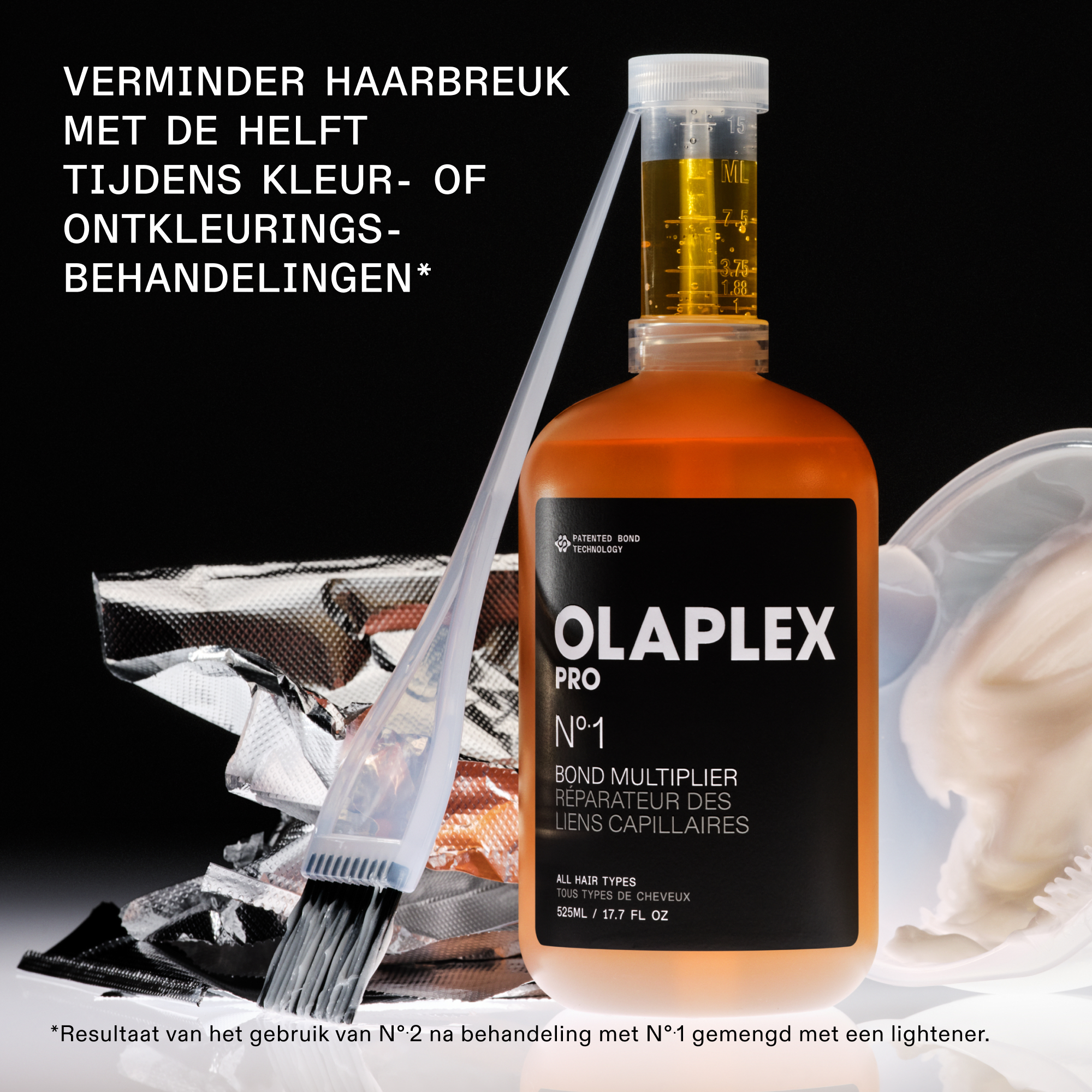 OLAPLEX Nº.1 Bond Multiplier® is een exclusief professioneel additief dat direct wordt gemengd in kleur-, blonderings- en chemische serviceformules om het haar te helpen beschermen en bond repair te ondersteunen tijdens de inwerktijd. Het is Stap 1 van het Original Bond Building System en hoort altijd te worden afgerond met OLAPLEX Nº.2 Bond Perfector® na het uitspoelen.