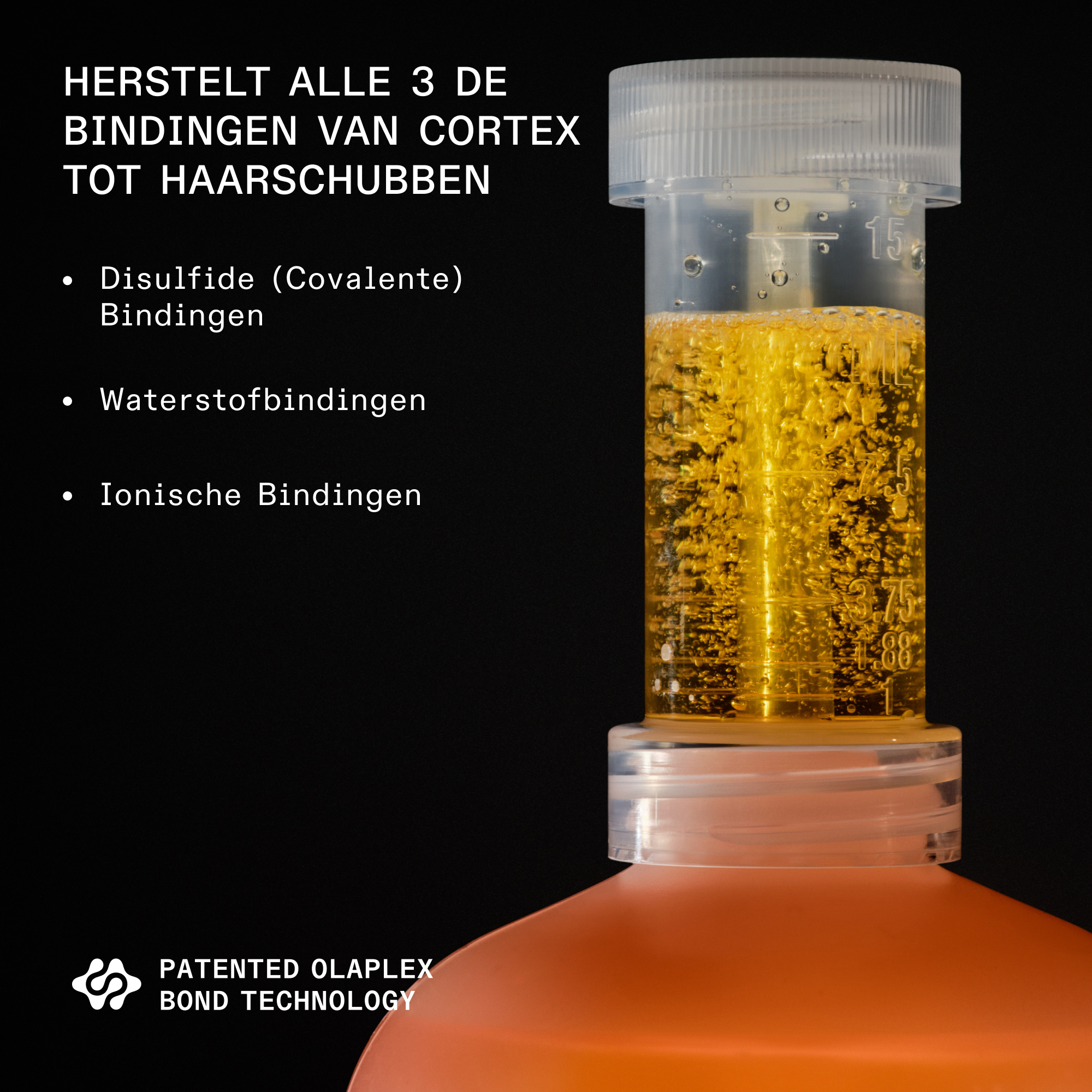 Aangedreven door OLAPLEX Complete Bond Technology met het gepatenteerde molecuul Bis-Aminopropyl Diglycol Dimaleate, werkt Nº.1 op moleculair niveau om het interne bond-netwerk van het haar te ondersteunen tijdens chemische, thermische en mechanische stress.