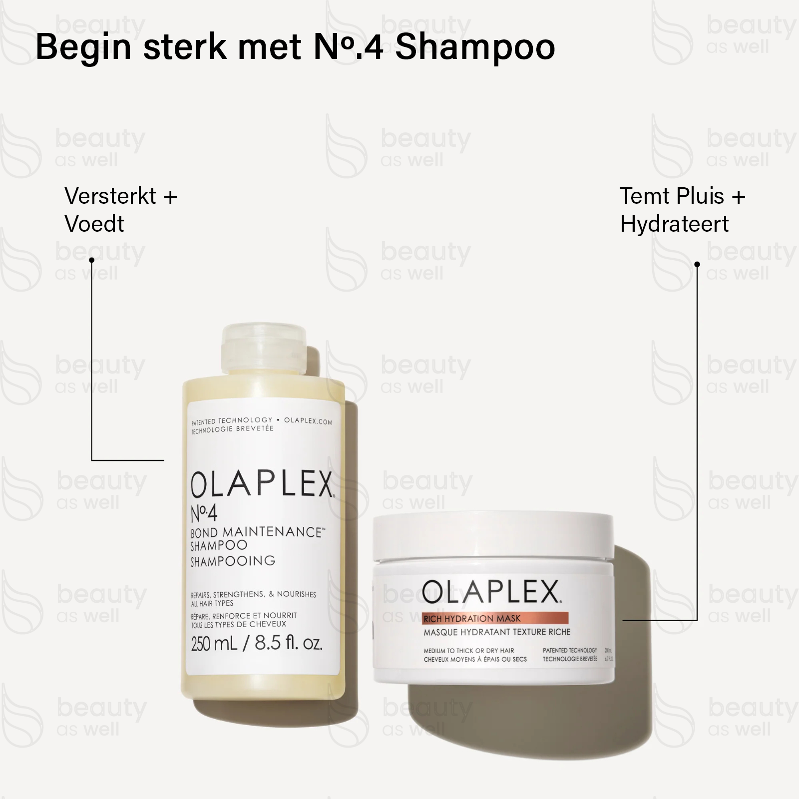 Voor het beste resultaat: combineer het OLAPLEX Rich Hydration Mask met de OLAPLEX Nº.4 Bond Maintenance Shampoo voor extra zachtheid en herstel.